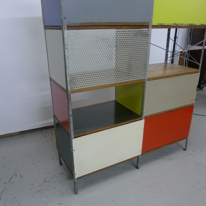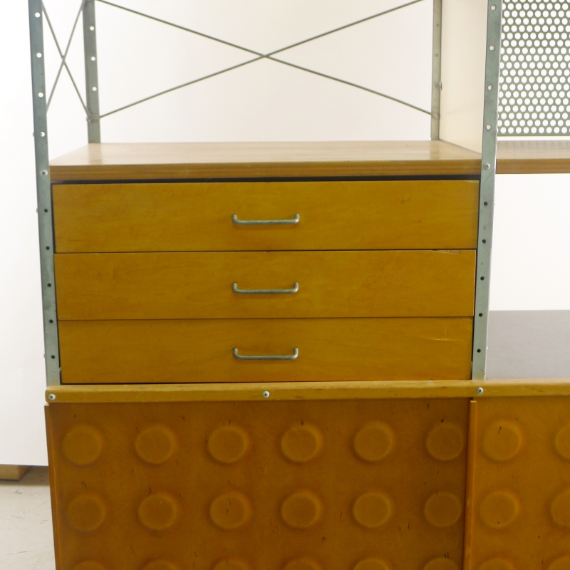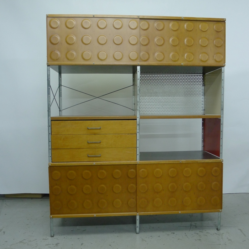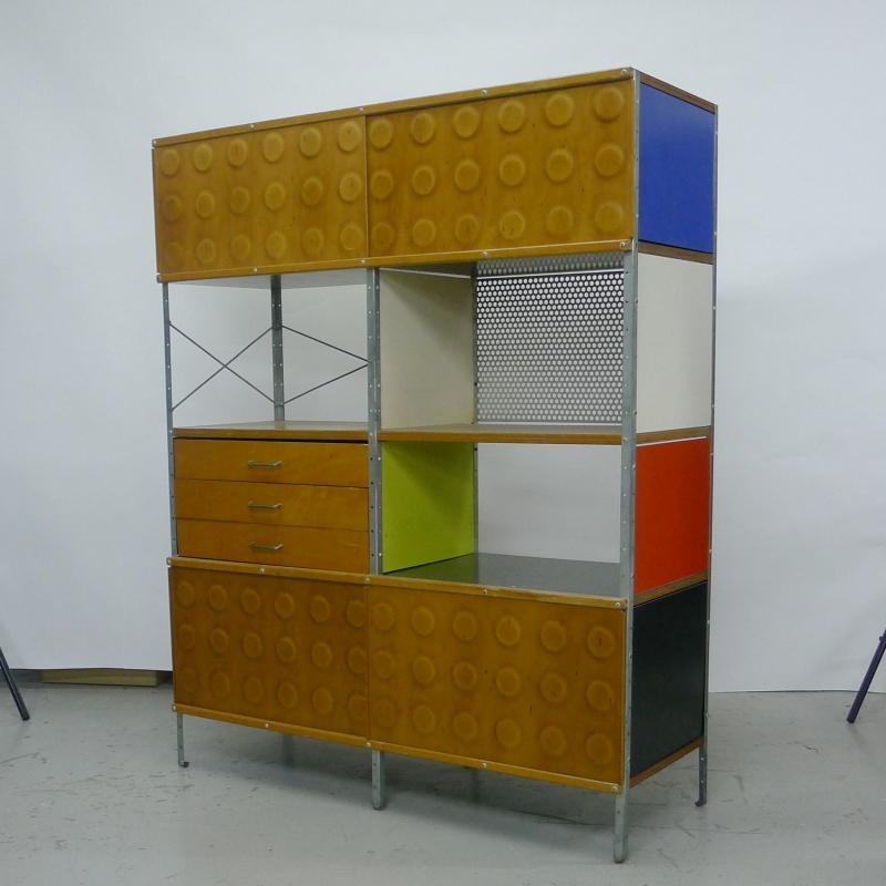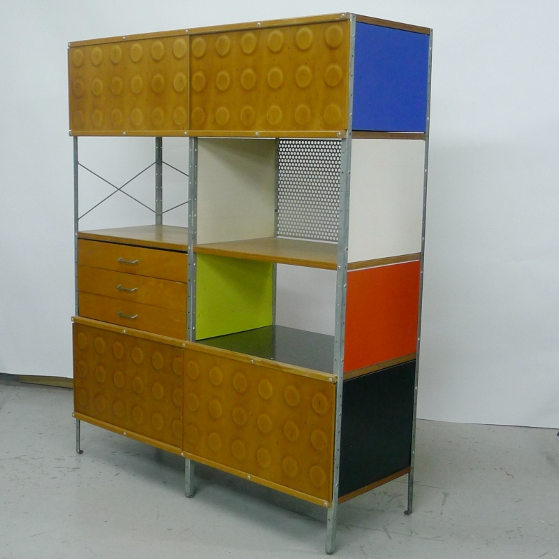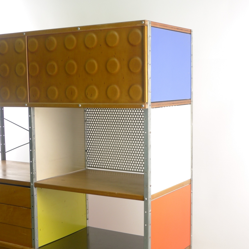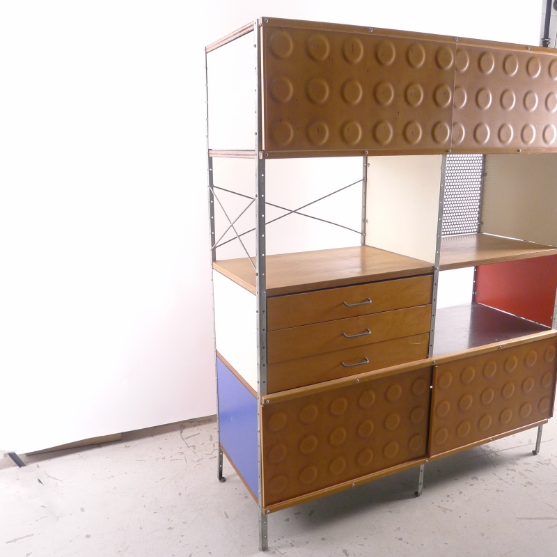 The Eames Storage Unit (ESU), introduced in 1950, was a range of lightweight, fully modular storage systems designed to be customized by the user. The series was produced in three heights and two widths, with model numbers determined by the number of vertical levels in each unit.