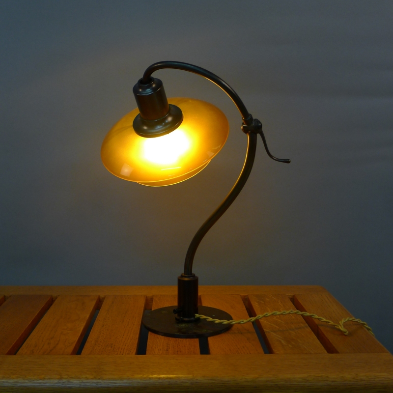 It is rare to find an original lamp still with the third internal shade. The ingenious design of the decorative lever on the stem allows the shade to be tilted from side to side and secured in place as required.