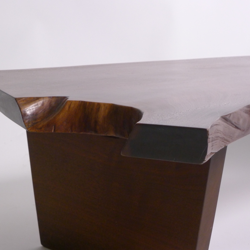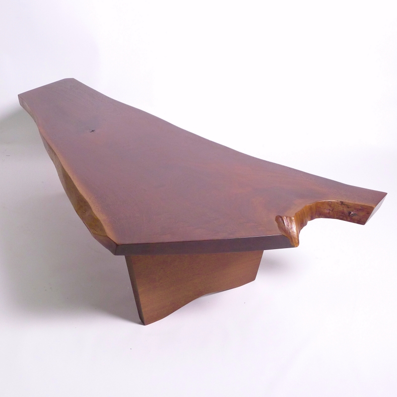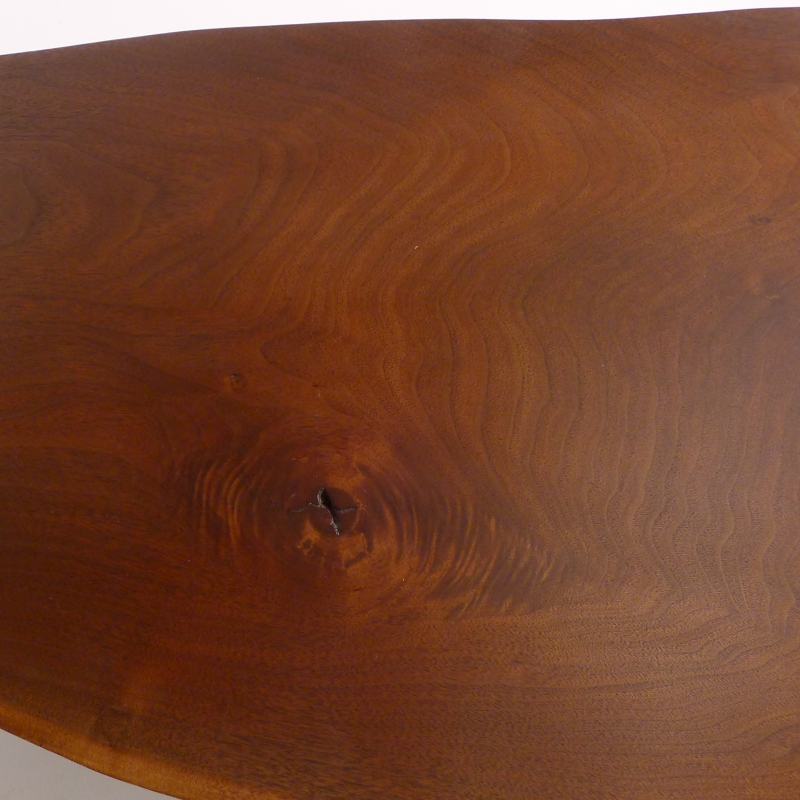American black walnut single slab top with two free edges, several exposed knots, and expressive grain