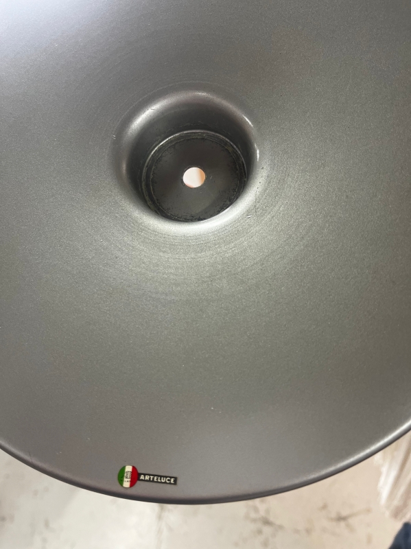 Arteluce label to underside of aluminium plate